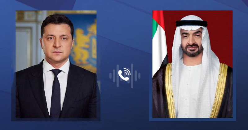 President His Highness Sheikh Mohamed bin Zayed Al Nahyan today received a telephone call from Volodymyr Zelenskyy, President of the Republic of Ukraine, during which they discussed the relations between their countries and ways to develop them.