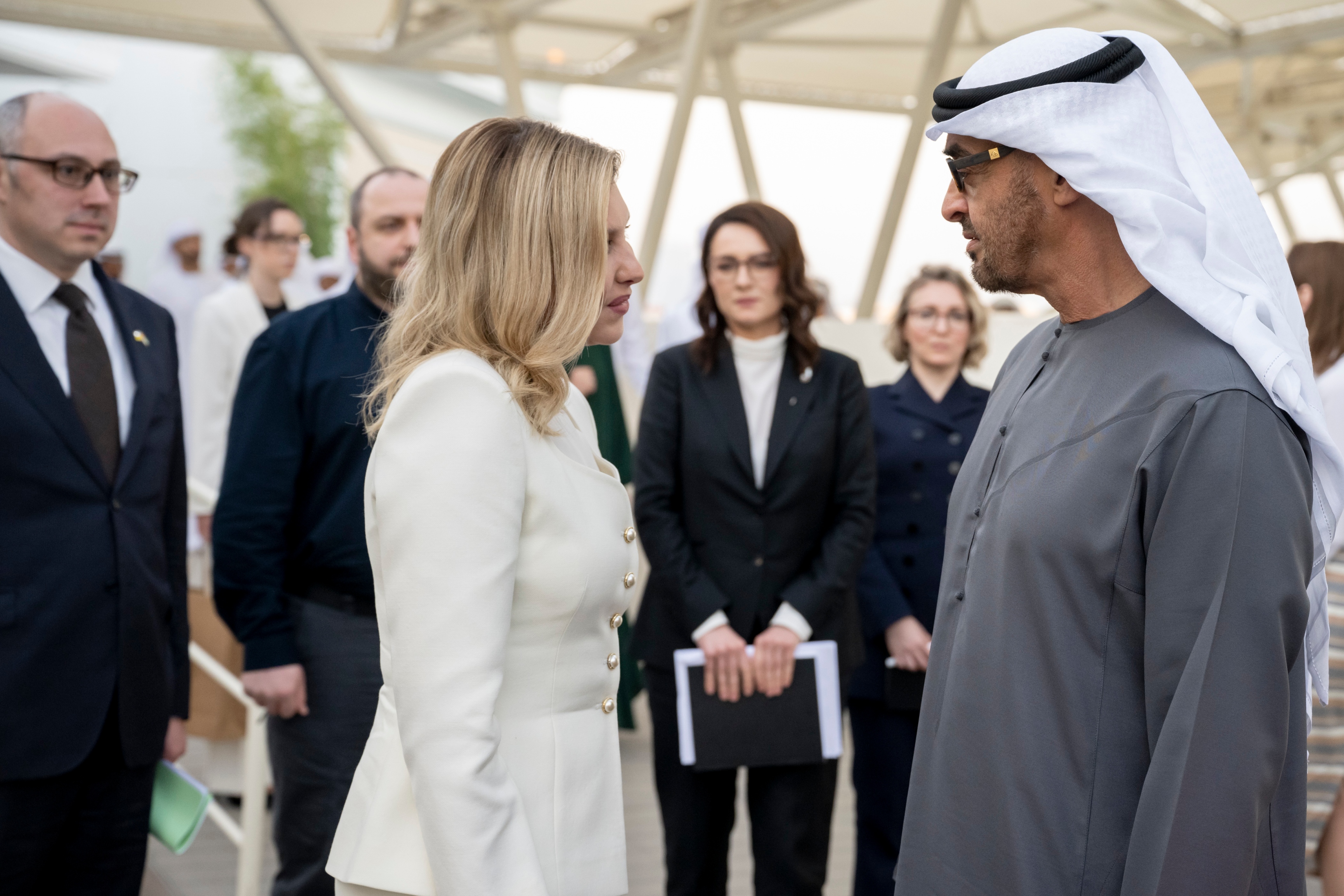 His Highness Sheikh Mohamed greeted Mrs Zelenska at the Qasr Al Bahr majlis and was briefed on the human consequences of the Ukrainian crisis, particularly with regard to children.