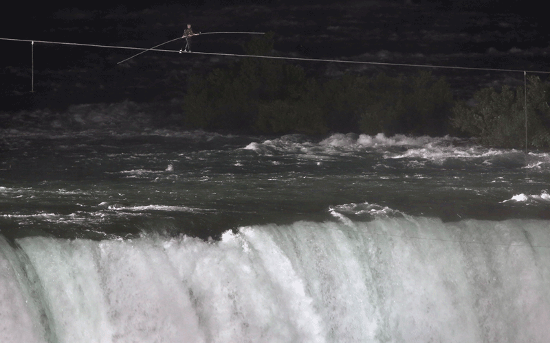 More than 150 years ago, French aerialist Charles Blondin, known as "The Great Blondin," famously walked a high wire strung farther down the Niagara gorge, but a trek over the brink of the falls had never before been attempted.