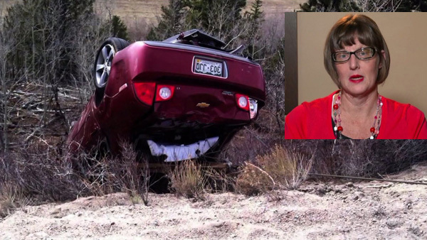 Police said she lost control of her car on a curve near Red Hill Pass, about 65 miles (105 km) southwest of Denver, and the vehicle rolled several times down a steep embankment before coming to rest upside down in a grove of Aspen trees.