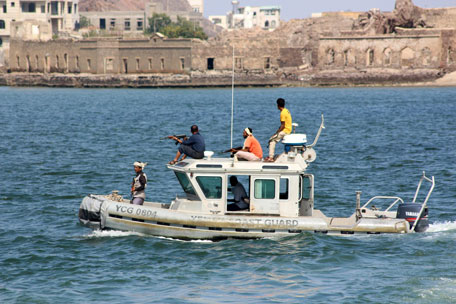 Members of the Yemeni coast guard patrol on a boat off the port of the southern city of Aden. (AFP)