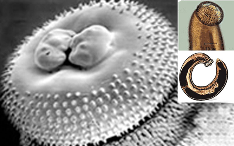 The worms are 1-3mm long, have got sharp teeth and can work their way around the body until it dies or is killed by the human immune system.
