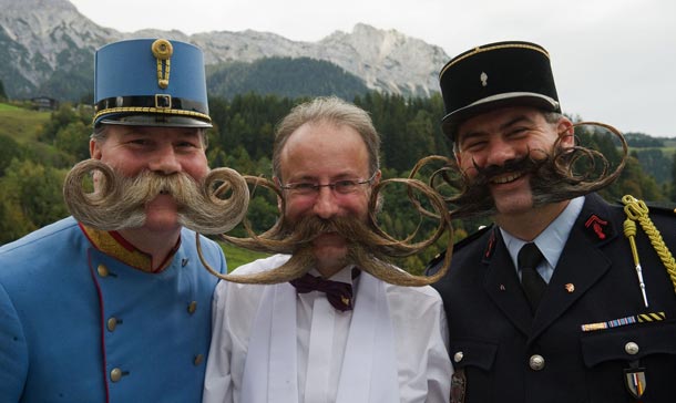 Wearers of spectacular beards and moustaches gathered in the Austrian town of Leogang for a Europe-wide facial hair contest, organisers said.