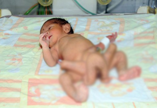 A newly-born child with six legs at a hospital in Karachi. (AFP)