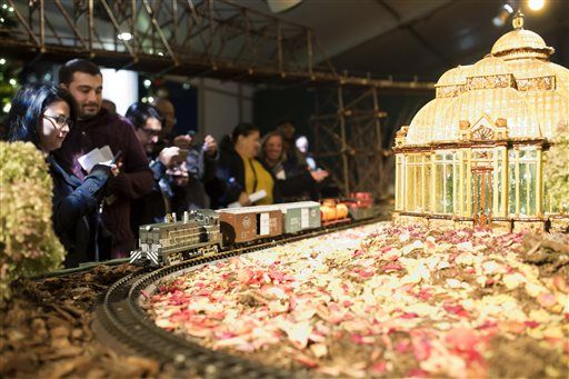 Visitors viewing the annual Holiday Train Show at the New York Botanical Garden in the Bronx borough of New York. (AP)