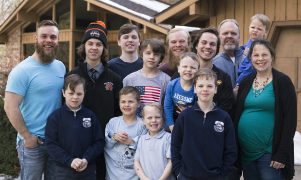 The Schwandt family has 13 sons and have welcomed a 14th into the family. (AP)