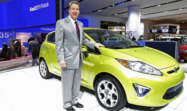 Ford Motor Co. Executive Chairman William Ford, Jr. poses next to 2011 Ford Focus. (AP)