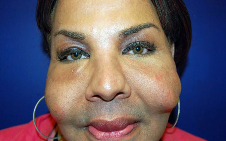 The damage illicit cosmetic procedures can cause recipients such as Rajindra Narinesinch, a patient whose face shows nodules from previous illicit procedures. (AP)