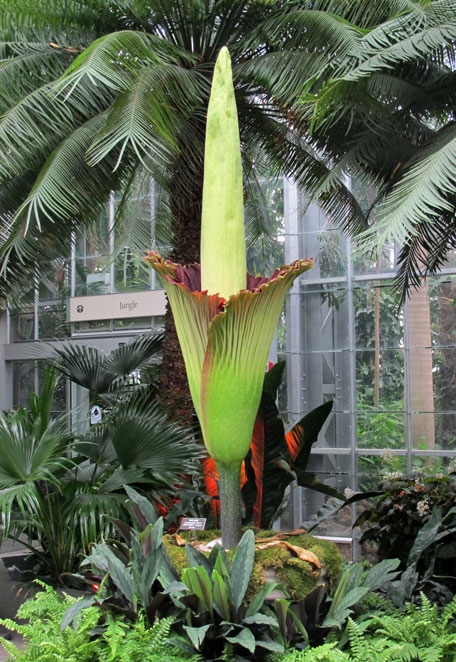 The flower is officially known as the titan arum. It is native to the tropical rainforests of Sumatra, Indonesia, and was discovered in 1878.