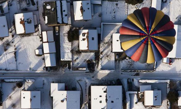 The landing on a hillside fence behind the house was filmed by a member of the wedding party. Video showed the blue-and-yellow balloon draped over trees near the house afterward.