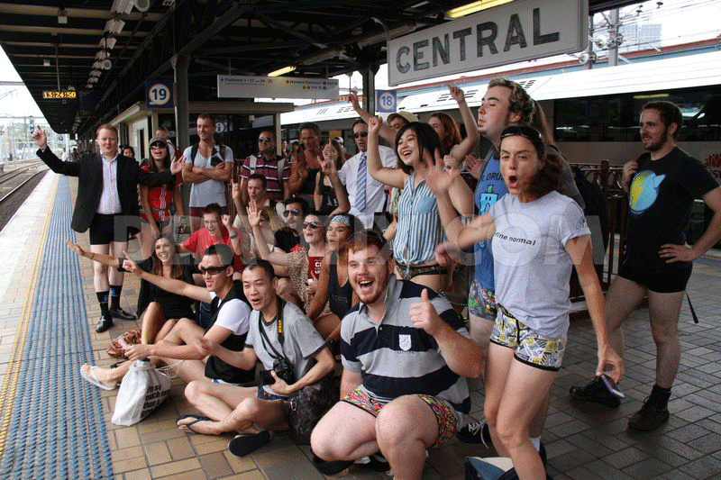 The World No Pants Subway ride in Sydney. Picture taken on the platform at Central train station