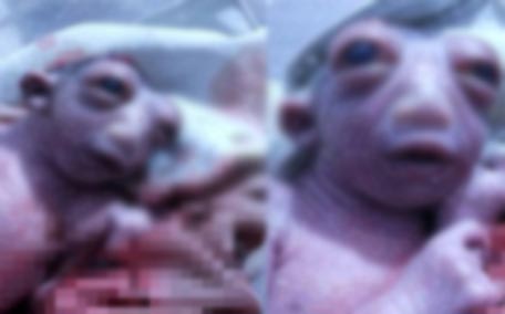 The baby girl had over developed, protruding eyes and undeveloped brain, YouTube images reveal.