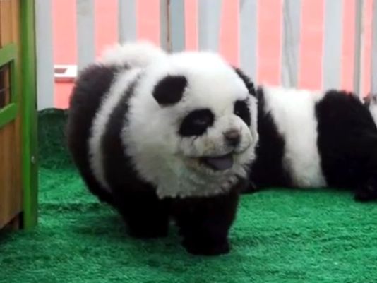 The Chows undergo two hours of cosmetic primping to look like pandas and need a touch-up every six weeks, but residents don't seem to mind because pet shops are having an incredibly hard time keeping up with the demand.