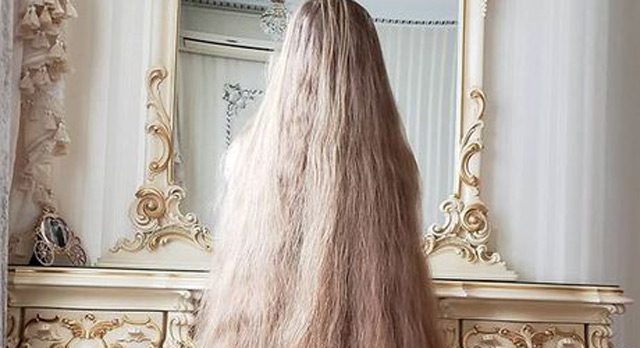A real-life Rapunzel from the Ukraine is proud of her long hair which she hasn't cut in 28 years.