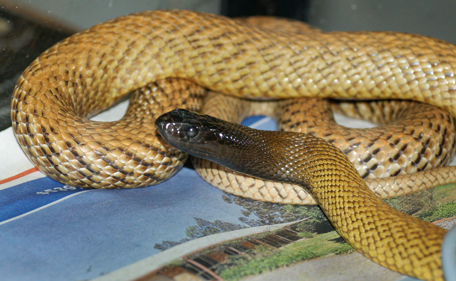 The inland taipan snake responsible for biting an Australian teenager, leaving him critically ill in hospital in Kurri Kurri, north of Sydney. (AFP)