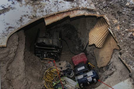 Police found plywood wall supports, a gas generator, moisture resistant light bulbs, a sump pump for removing ground water, a wheelbarrow and food and beverage containers. They also found a rosary with a Remembrance Day poppy nailed to a wall.