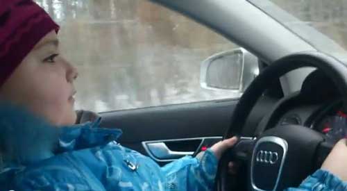 The little girl seems unperturbed handling the Audi to the sounds of techno music from the stereo. A man sitting in the passenger seat, apparently her father, tells her: "Come on! Accelerate! At least to 100! Don't be afraid."