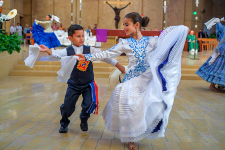 Children dance at the Cathedral of Los Angeles, California during the annual festival honoring the patron Saint Peru. (AFP)