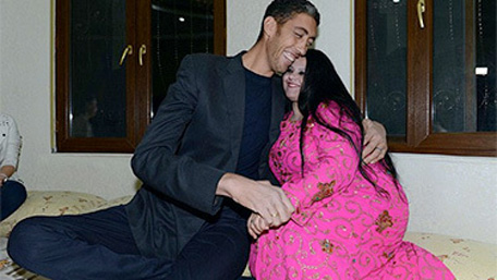 Sultan Kosen 2.5m-tall, the world's tallest man, has his head in the clouds as he prepares to marry a woman nearly a metre shorter than him Merve Dibo.
