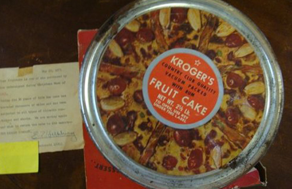 A fruitcake made in 1941 by The Kroger Co. It was returned unopened to a Kroger store in 1971. The Elite Estate Group sold the cake in an auction on its website for $525 to an Arizona man the money will go to the homeless in southwest Ohio. (AP)