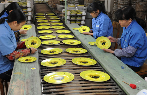 It employs more than 8,000 and is known for producing high-end table and dining ware for export to Europe, the United States and Southeast Asia. Qiu said a special high-fire glazing technique is being used to manufacture the wedding porcelain, with the plates and mugs being set at temperatures of more than 1600 degrees C in the kilns.