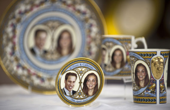 Commerative royal wedding memorabilia is displayed at Caverswall China Company in Stoke-on-Trent, central London. (AFP)