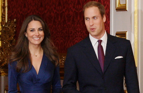 Britain's Prince William and his fiancee Kate Middleton arrive for a media photocall. (AP)