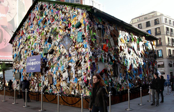 The Beach Garbage Hotel in central Madrid, was built using 12 tonnes of garbage collected from the beaches, rubbish dumps and flea markets. (REUTERS)