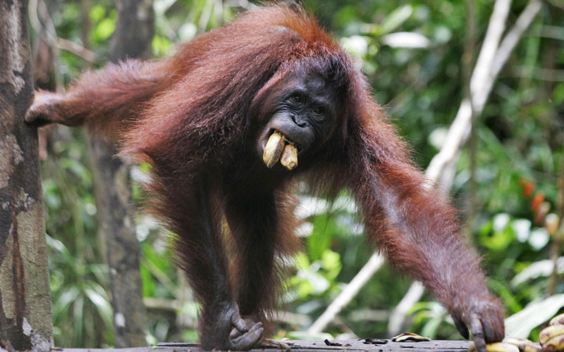 In the wild, orangutans rarely come down to the ground, the zoo said, and in the improved enclosure the primates will be able to climb up one tree screened from the public to an outdoor enclosure with seven other trees 10-metres (yards) high.