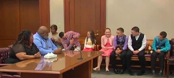 The family was all smiles in a video from WCPO-TV in Cincinnati when the adoption became official in a Hamilton County courtroom Thursday.