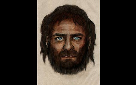 A drawing depicting how a hunter-gatherer who lived in Europe some 7,000 years ago who had blue eyes and dark skin, a combination that has largely disappeared from the continent in the millennia since, might have looked like according to scientists. (AP )