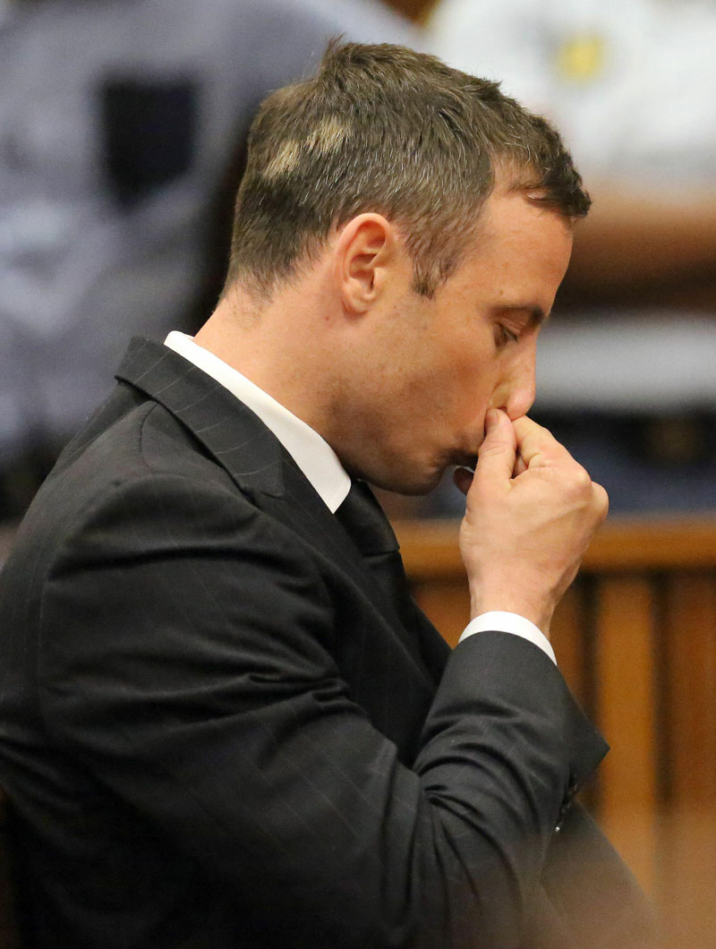 South African Paralympic athlete Oscar Pistorius sits in the dock after his sentencing at the High Court in Pretoria, on October 21, 2014 [AFP]