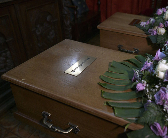 There is a range of coloured coffins available from lilac to rose gold to pink, all of which are upholstered by hand.