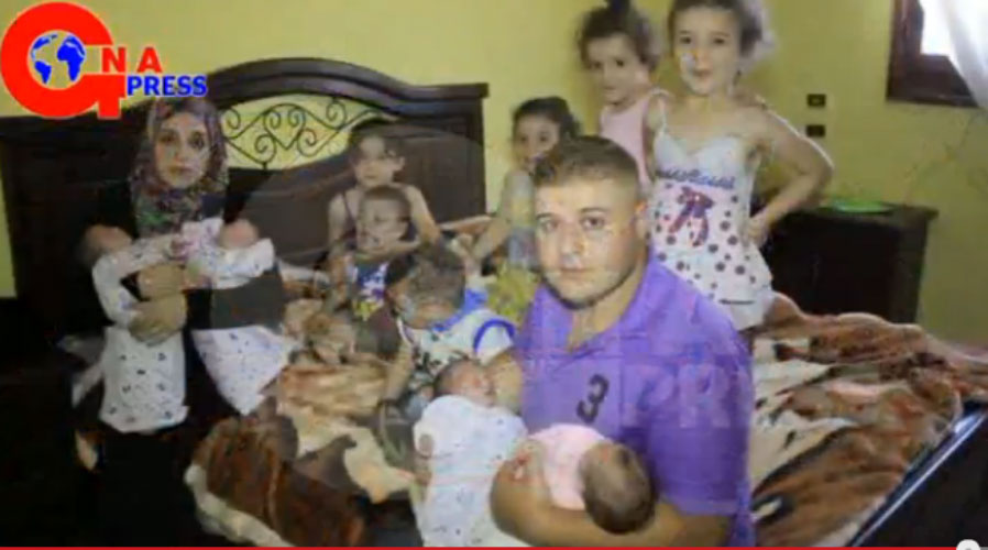 Palestinian newspapers said the 11 children had been born over a period of seven years, including twin boys, quadruplet girls and quintuplet girls.