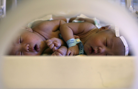 According to The Daily Mail, Pamela Sutherland and husband Barry knew that it wasn’t going to be a problem telling their twins apart because at 8 pounds1oz, twin Daisy dwarfed her sister Poppy, who weighed in at just 5pounds7ozs.