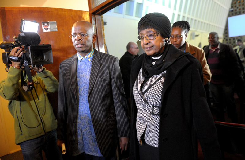 Winnie Madikizela–Mandela (front R), the second wife of former South African president Nelson Mandela takes part in a rally in honour of Nelson Mandela, who lays in critical condition in a hospital in Pritoria in Johannesburg. Emotional crowds gathered outside the hospital in Pretoria, as relatives and clan elders made preparations for the revered former South African leader's final journey. Singing supporters amassed outside the Pretoria hospital where the 94-year-old anti-apartheid hero was fighting for his life. (AFP)