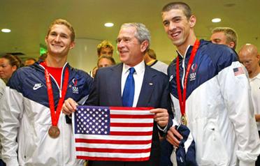 Phelps, wearing the new form-fitting Speedo LZR Racer swimsuit, launched an American charge which saw them win five medals in the pool for a Games total of eight including two gold.