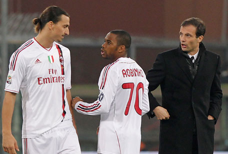 AC Milan's Zlatan Ibrahimovic (left) and Robinho (centre) are expected to arrive in Dubai for their winter training camp. (FILE)