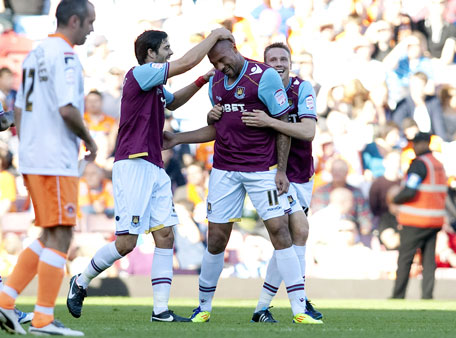 The Hammers have struggled on home turf this season but John Carew set them on their way with a 12th minute header and Blackpool collapsed after the break as a Sam Baldock double and Jack Collison’s strike completed the rout.