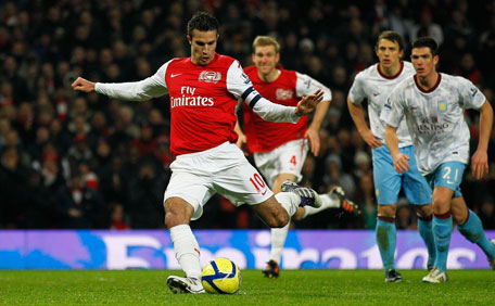 Robin van Persie scored two goal from the penalty spot during Arsenal's FA Cup win over Aston Villa at Emirates Stadium on Sunday in London, England. (FILE)