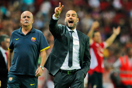 Pep Guardiola is on a one-year rolling contract with Barcelona. (FILE)