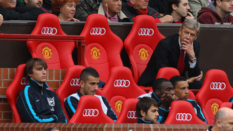 Arsenal manager Arsene Wenger looks on during the Barclays Premier League match against Manchester United at Old Trafford on Saturday in Manchester, England. (GETTY)