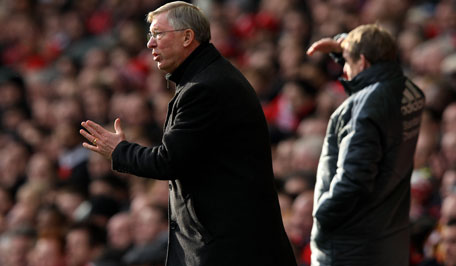 Manchester United manager Sir Alex Ferguson gestures during the FA Cup fourth round tie against Liverpool at Anfield on Saturday in Liverpool, England. (GETTY)