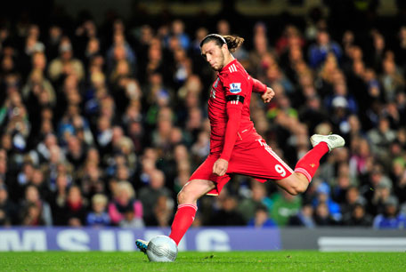 Liverpool's Andy Carroll misses a penalty during their League Cup match against Chelsea at Stamford Bridge, in London, on Tuesday. (AFP)
