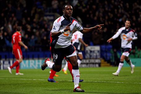 Nigel Reo-Coker of Bolton Wanderers celebrates scoring his team's second goal during the Barclays Premier League match against Liverpool at the Reebok Stadium on Saturday in Bolton, England. (GETTY)