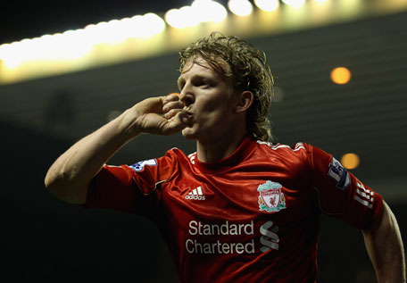 Liverpool's Dirk Kuyt celebrates his goal during the Barclays Premier League match against Wolverhampton Wanderers at Molineux on Tuesday in Wolverhampton, England. (GETTY)