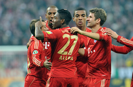 Thomas Mueller’s deflected shot gave Bundesliga leaders Bayern a 33rd-minute lead and David Alaba added a second with a powerful drive from 15 metres.