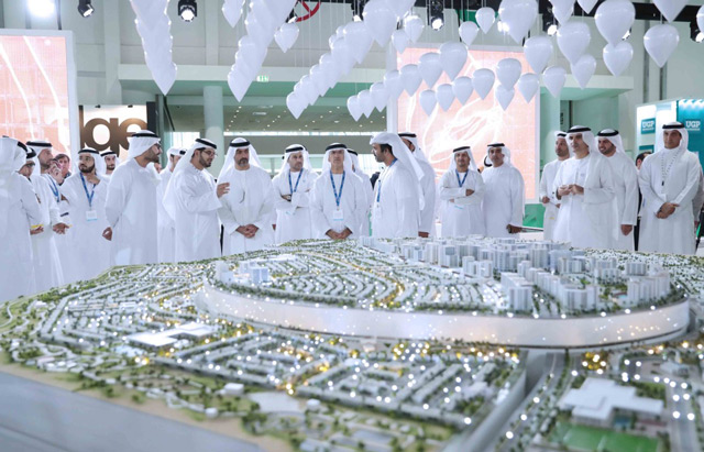 Sheikh Hamed reviewed the progress of projects organised by the participating pavilions, including the pavilions of the Department of Urban Planning and Municipalities and the Abu Dhabi Housing Authority, as well as those of various national companies, including Aldar Properties, Bloom and Imkan.