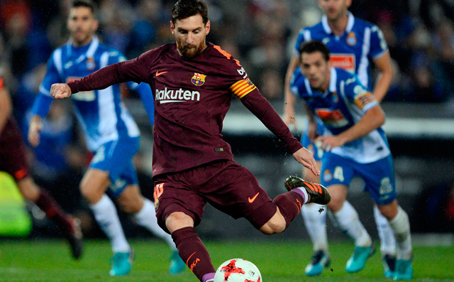 Lionel Messi missed a penalty as the Catalans lost 1-0 away to local rivals Espanyol in the quarter-finals of the Copa del Rey on Wednesday, although the holders can still turn the tie around in the second leg next week.