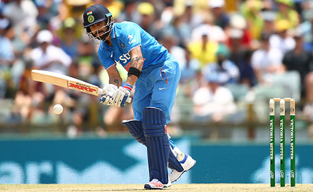 FOURS: Kohli makes room on the leg and spanks Marsh twice through off side to get closer to his 24th ODI ton.